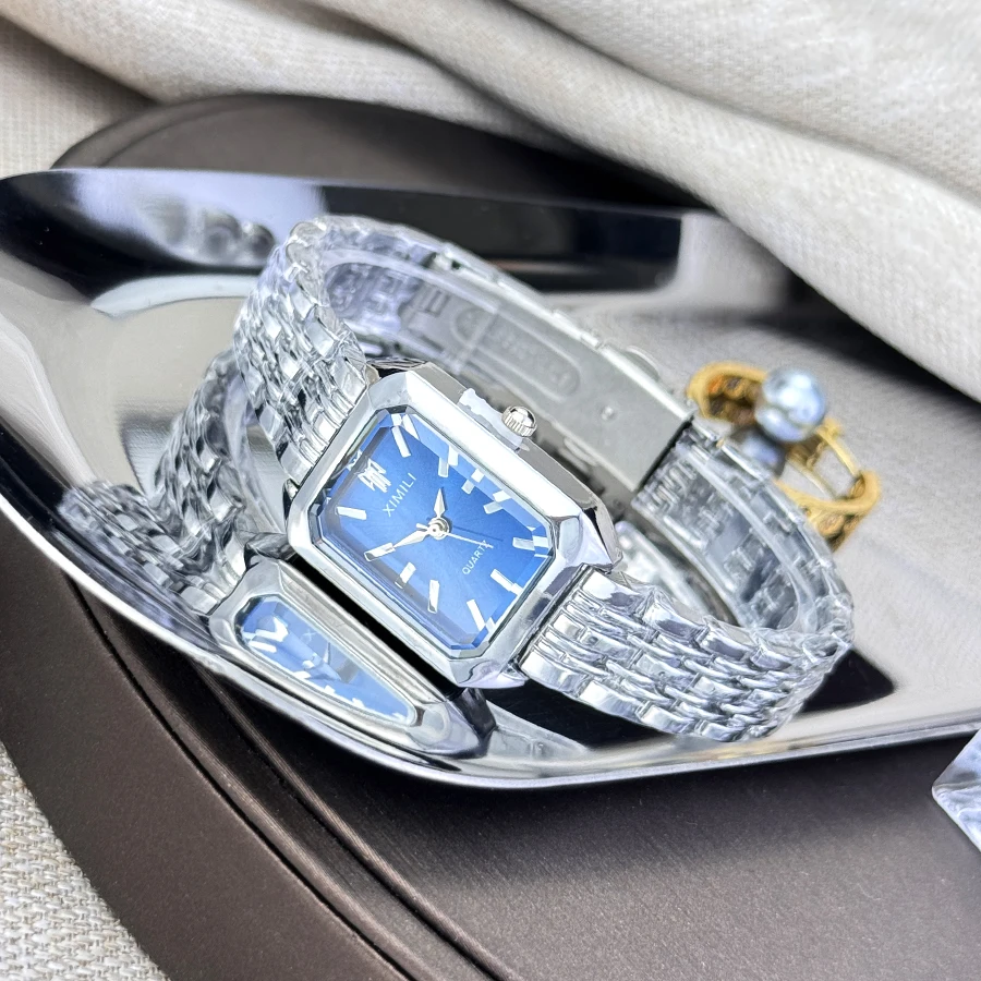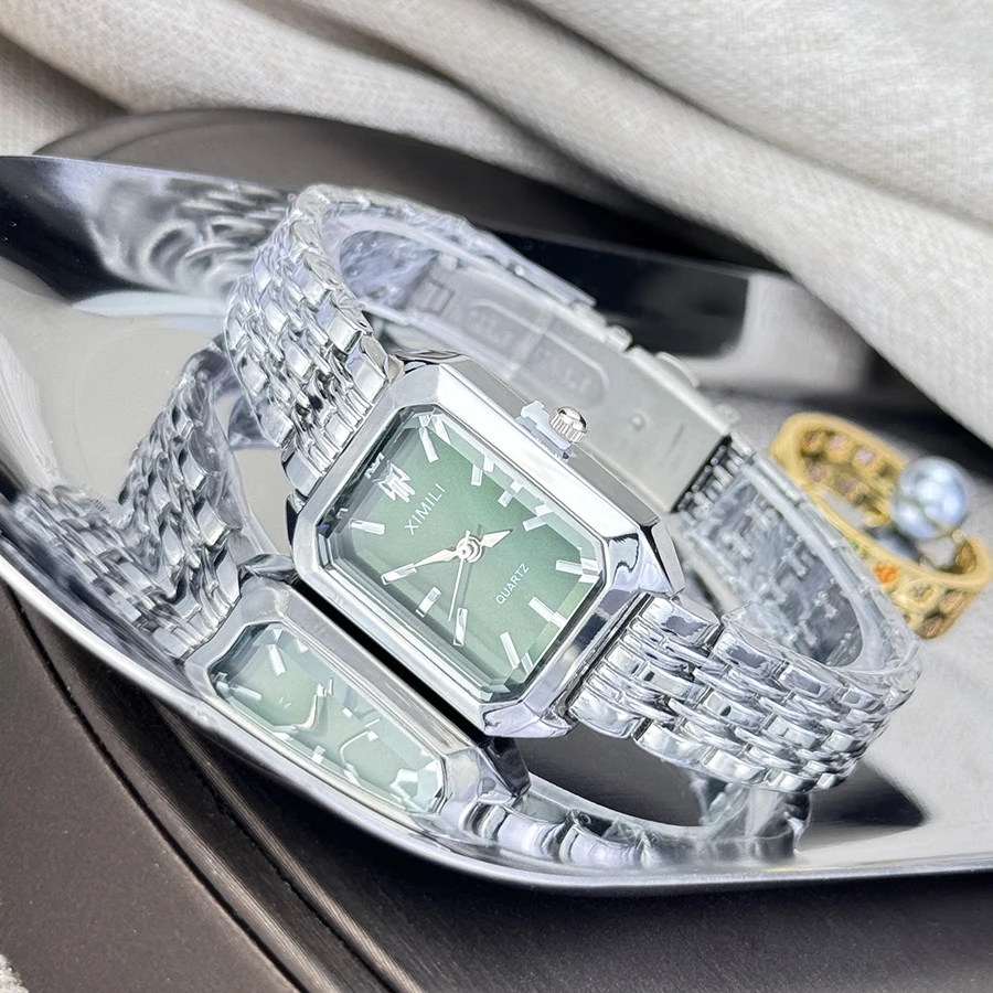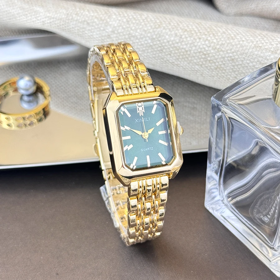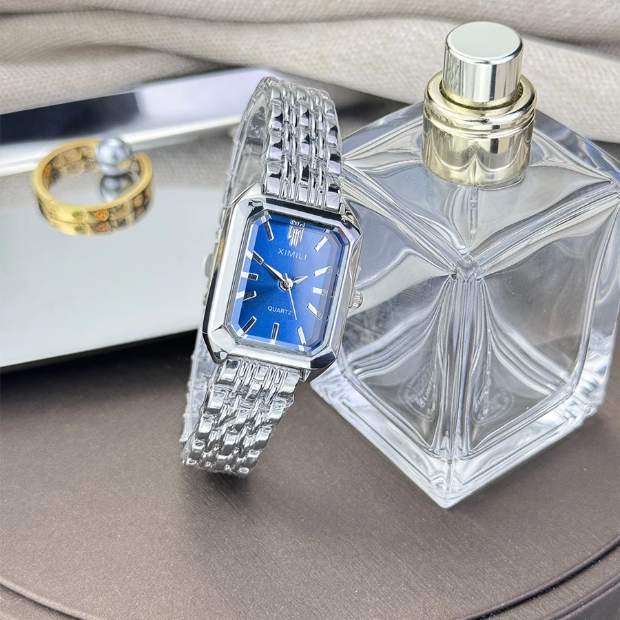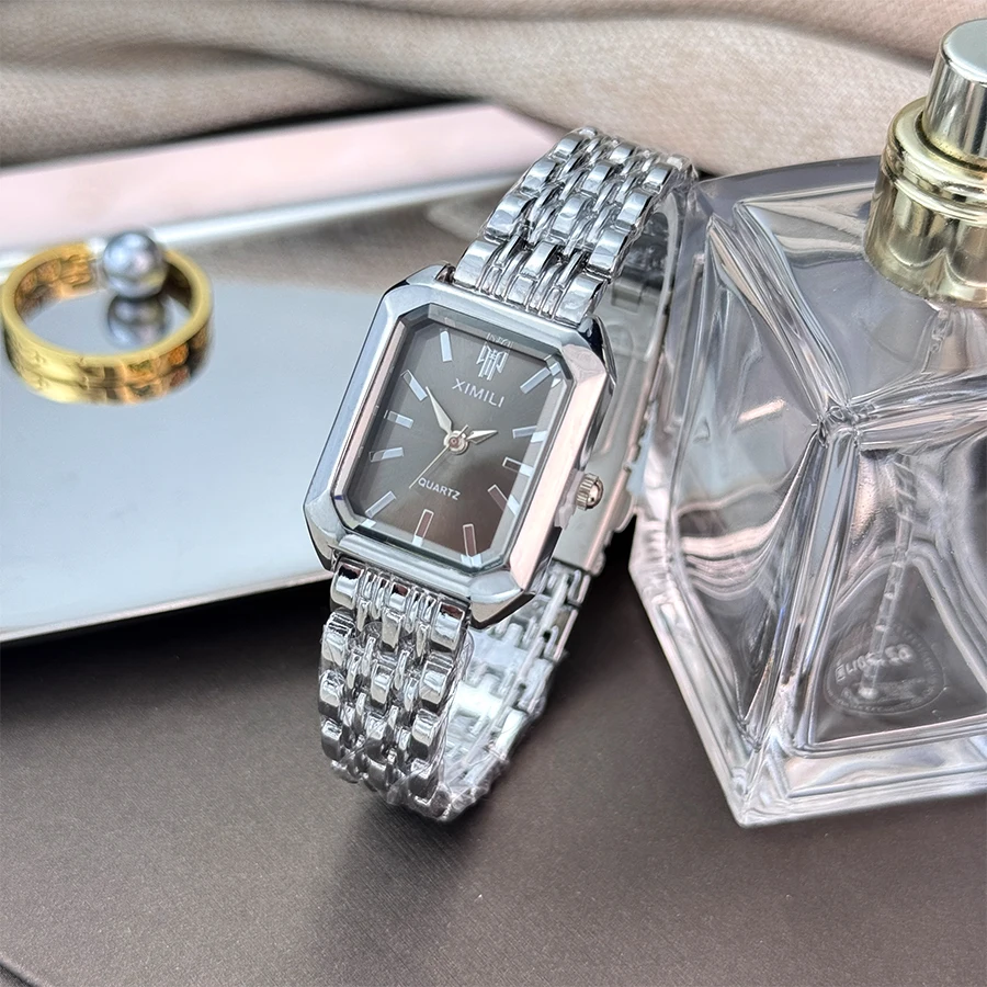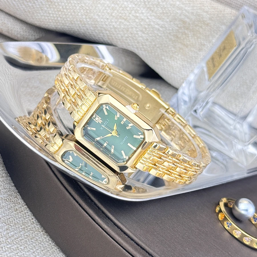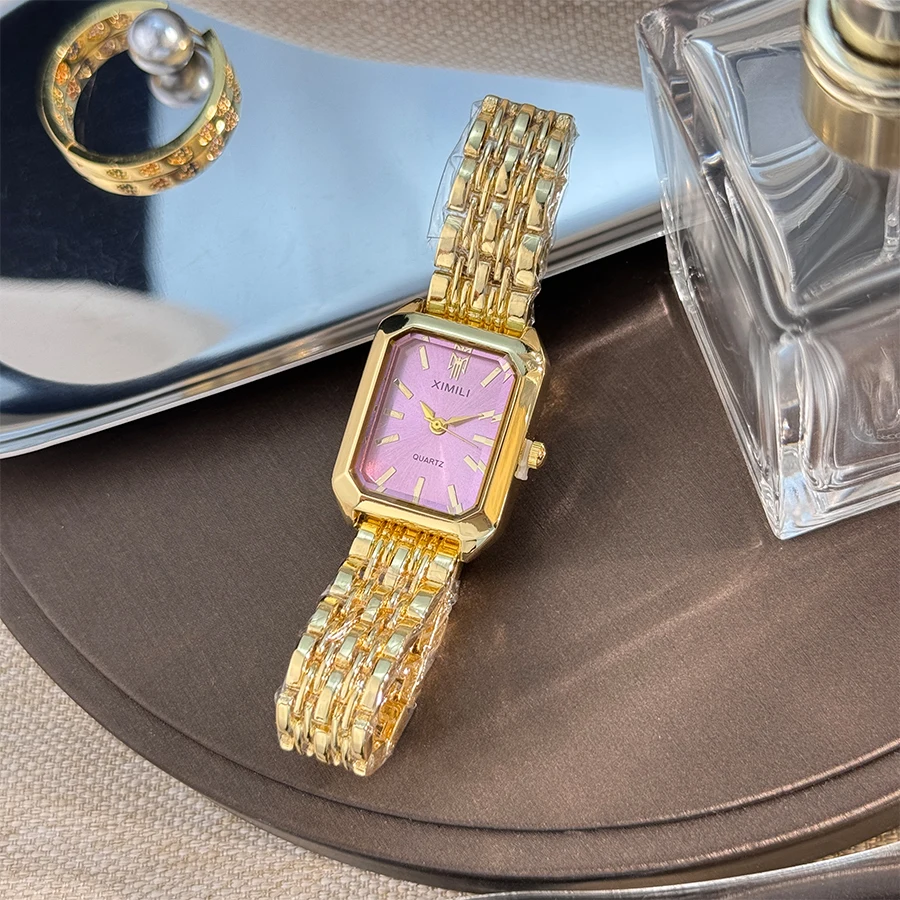Eleve o seu estilo com este relógio de luxo, com uma elegante caixa retangular e uma elegante pulseira de liga.